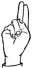На ћирилици написано АЛЕКСАНДАР ШЋЕЛОВИЋ састоји се из 18 слова [?]. Исписано ћириличном једноручном азбуком за глувонеме:
